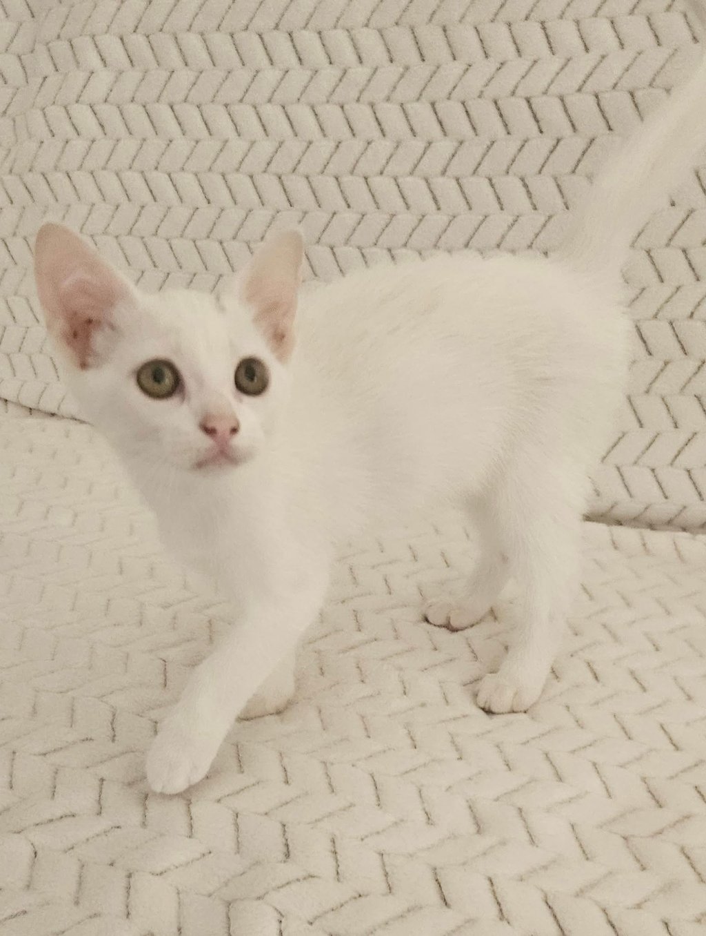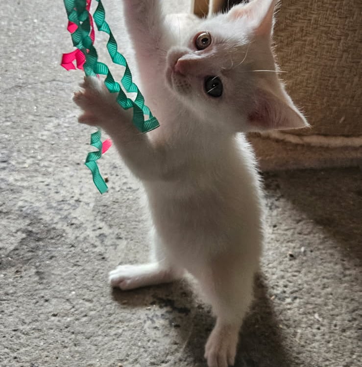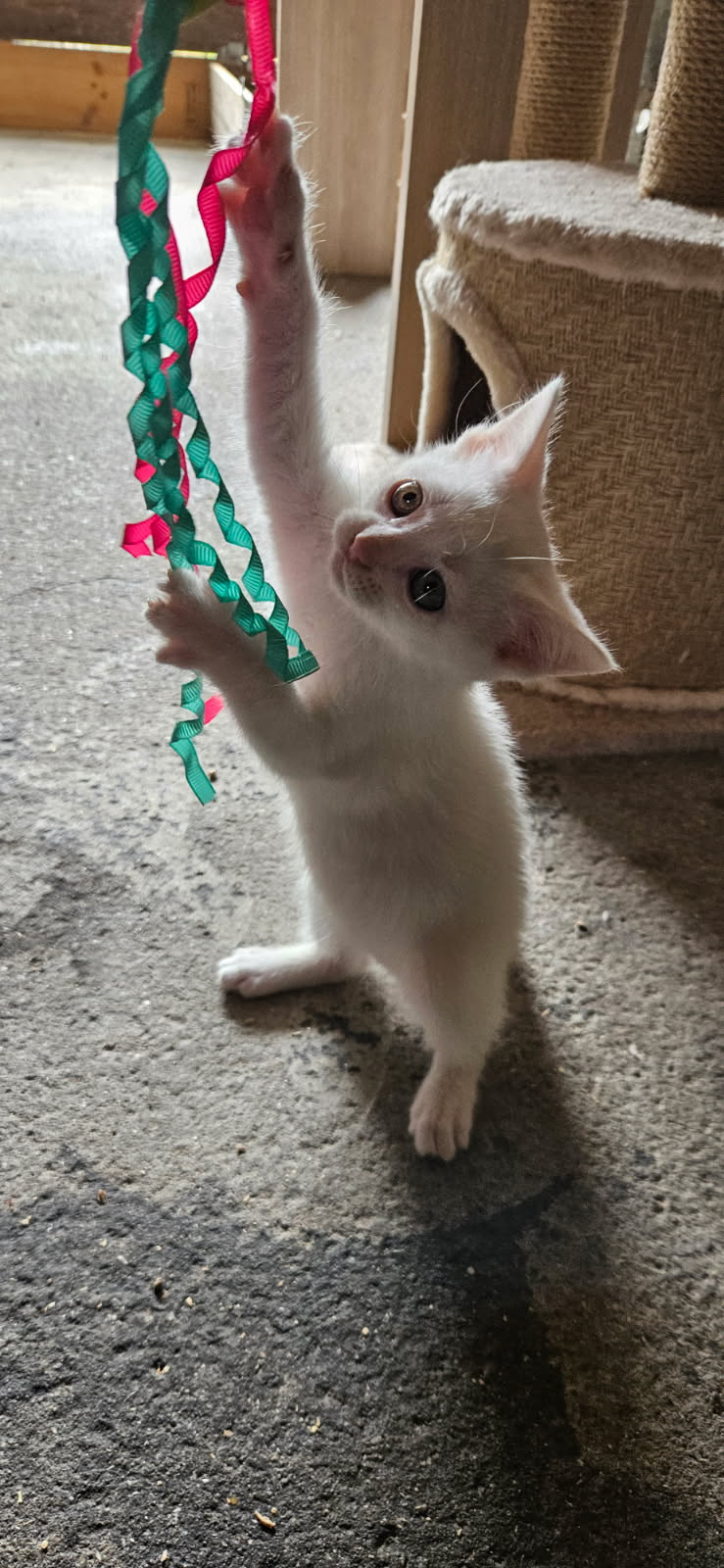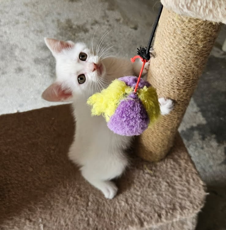 Je suis pleine d'énergie, j'adore courir avec mon frère et ma sœur et me faufiler dans plein d'endroits différents. J'adore escalader mon arbre a chat. Je suis très propre. Je ronronne beaucoup et cherche le contact.