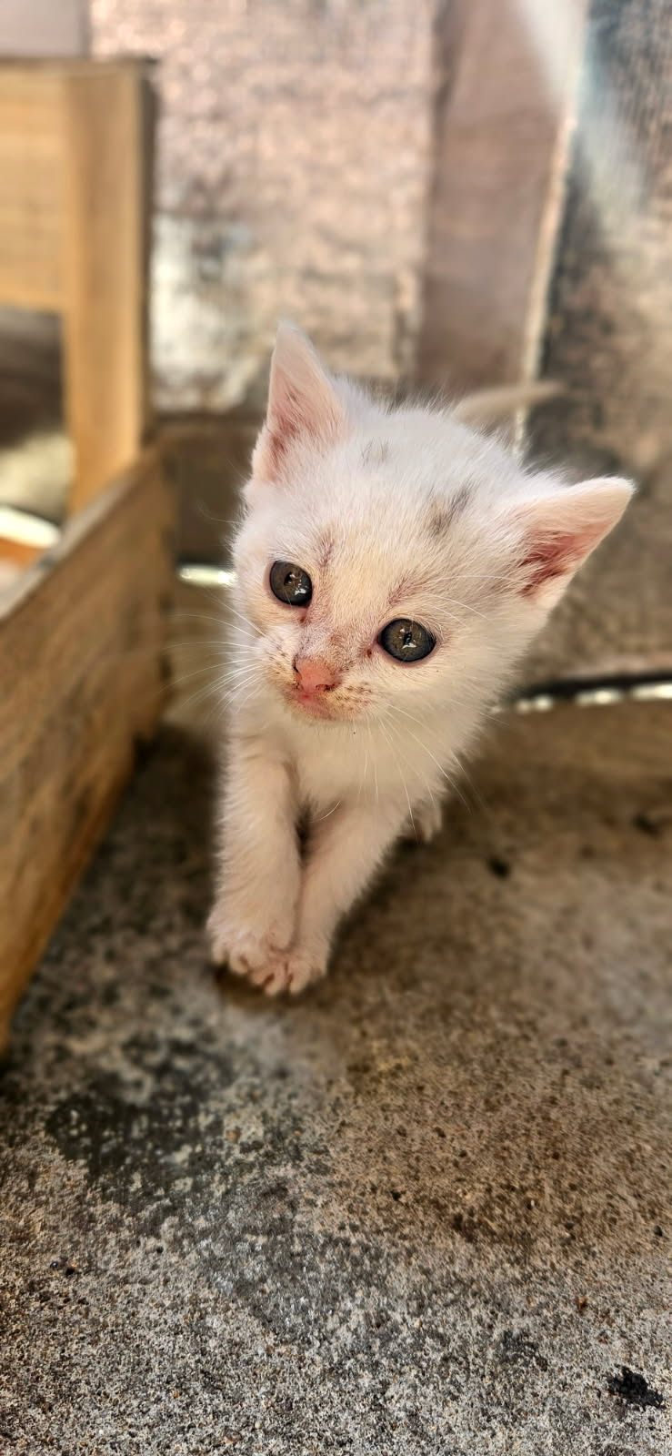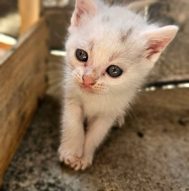 Azur, sa maman, son frère et ses sœurs ont été trouvés par une gentille famille sur la commune des Fosses. Tout ce petit monde a fait sa quarantaine à l'abri et appris les bonnes manières avant de rejoindre le reste de la maison. Sa maman et son frère ont depuis trouvé un foyer et elle reste avec Aloe et Azalée à l'adoption.