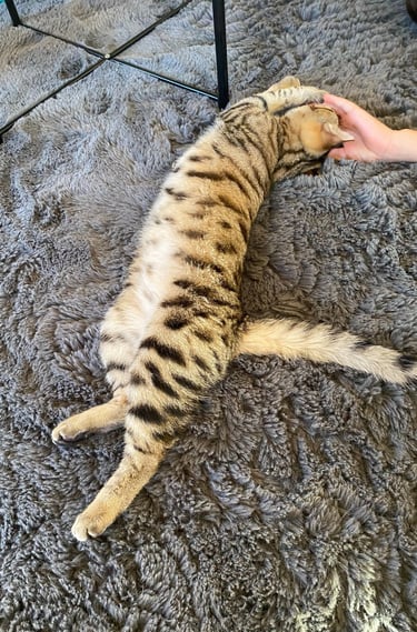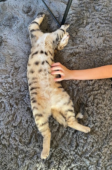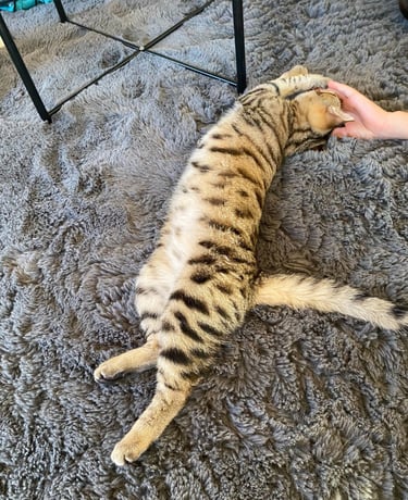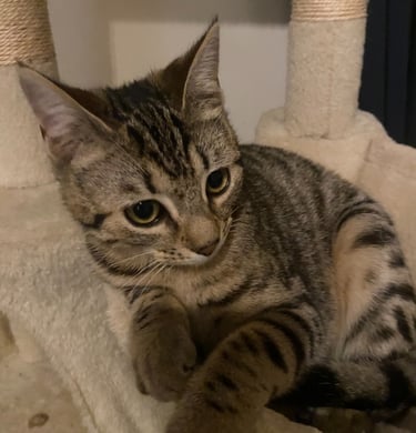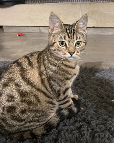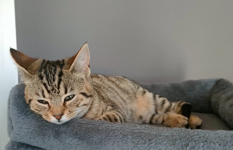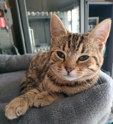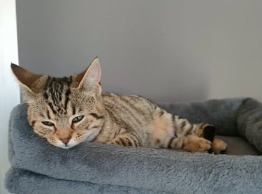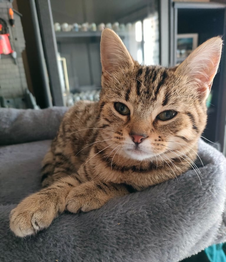 Coucou, moi c’est Buffy ! Je suis une petite chatte tigrée au regard tendre et au grand cœur. J’adore les caresses et venir chercher des câlins quand j’en ai besoin, toujours accompagnés de ronrons. Calme de nature, j’ai quand même mes petits moments de folie où je joue avec mon frère Salem ou avec mes balles de nerf préférées. J’aime beaucoup dormir bien au chaud, près de la cheminée ou blottie contre mon frère. Je ne suis pas téméraire, j’attends toujours patiemment mon tour pour les croquettes. Douce, discrète et très attachante, je suis toujours partante pour un moment de tendresse.