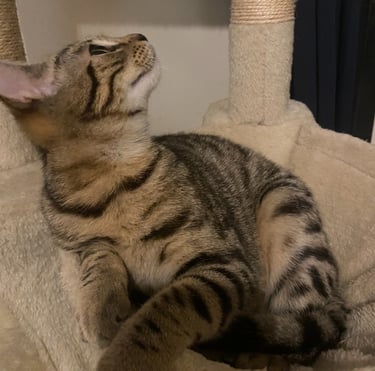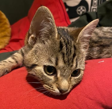 BUFFY a été trouvé par gentille dame avec son frère et sa soeur, malade, souffrant d'un bon coryza. Après des soins d'urgence, ils ont repris du poils de la bête en famille d'accueil et ont commencé à découvrir les joies et la sécurité d'un foyer chaleureux !