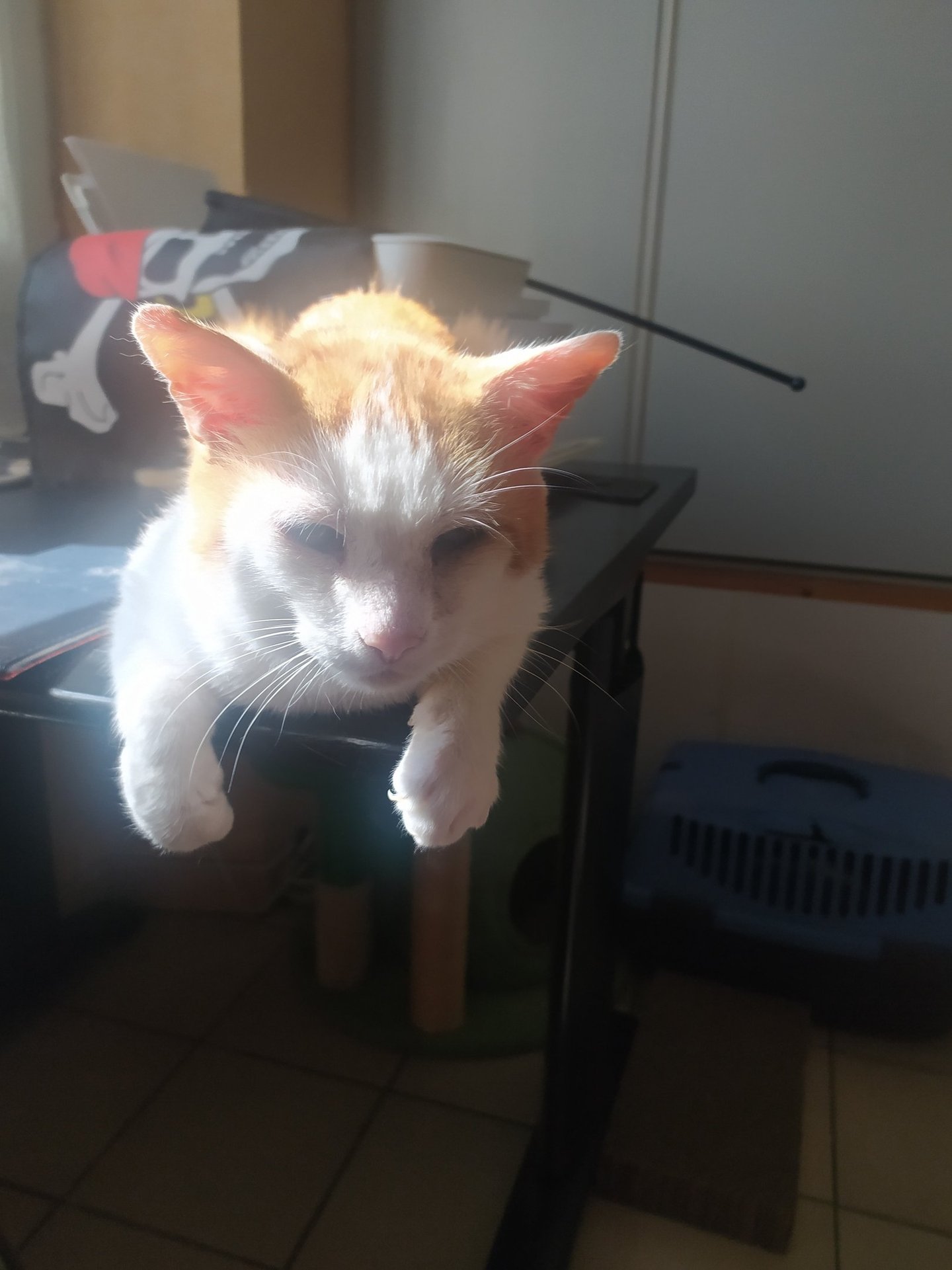 Je suis calme et posé. J'aime les compagnie des humains car ils gratouillent et câlinent. Je vis avec ma gentille famille d'accueil qui me montre et m'apprend tout et elle dit que je suis très propre et sage. Je ne grimpe pas aux rideaux et je me contente de peu. Les chiens et chats ne me dérangent pas mais j'ai une santé fragile apparemment. Moi j'aime surtout dormir sur un petit tapis et manger sans déranger ! Et surtout les caresses. Je tends ma patte pour en avoir et je la tends souvent car j'adooore ça !