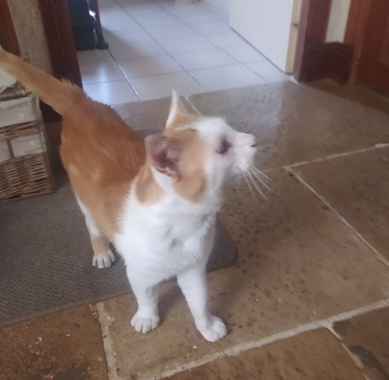 Pirate est un rescapé de la rue d'environ 6 ans. Il a du subir quelques déboires qui ont laissé des traces indélébiles : un oeil aveugle et le FIV. Il n'est pas du tout agressif envers les autres chats et cela était déjà le cas avant sa stérilisation. Il se faisait battre par les autres chats. Extrêmement doux et gentil, ce brave minet adore le contact avec l'humain et ronronne quand on s’occupe de lui.
